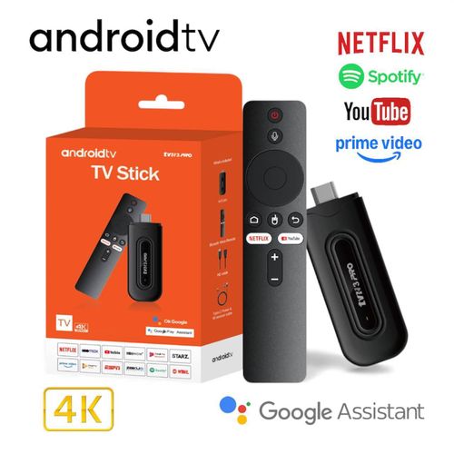 Android 16 TV Stick 4K 16gb/2ram avec Google Assistant, transforme votre TV en Smart TV, accès à Netflix, YouTube et Prime Video, télécommande incluse.