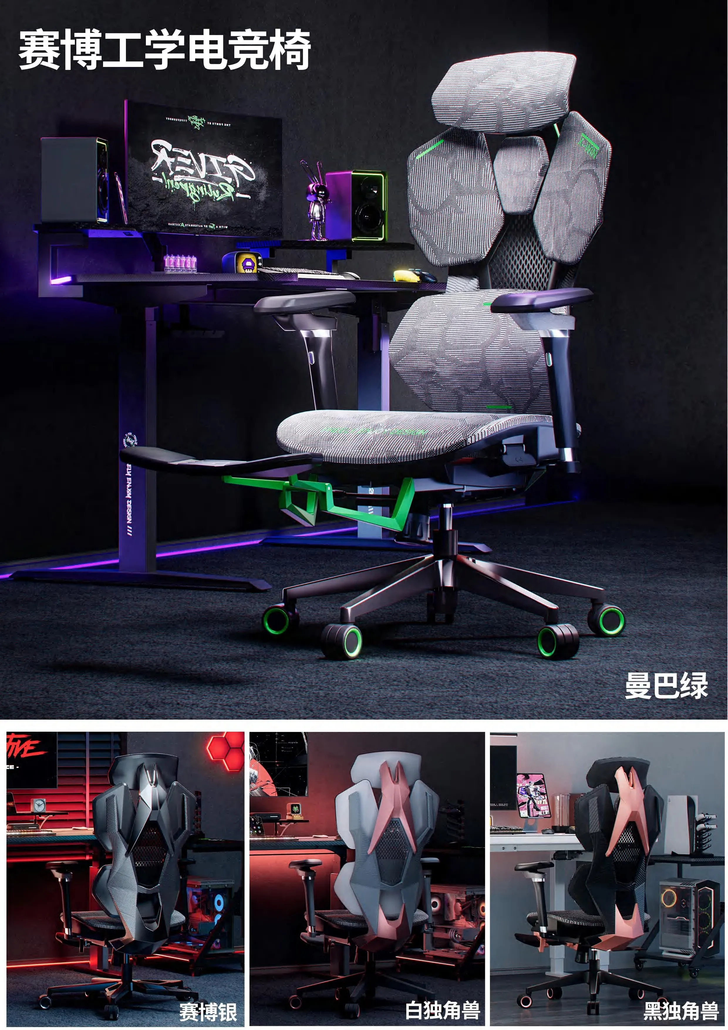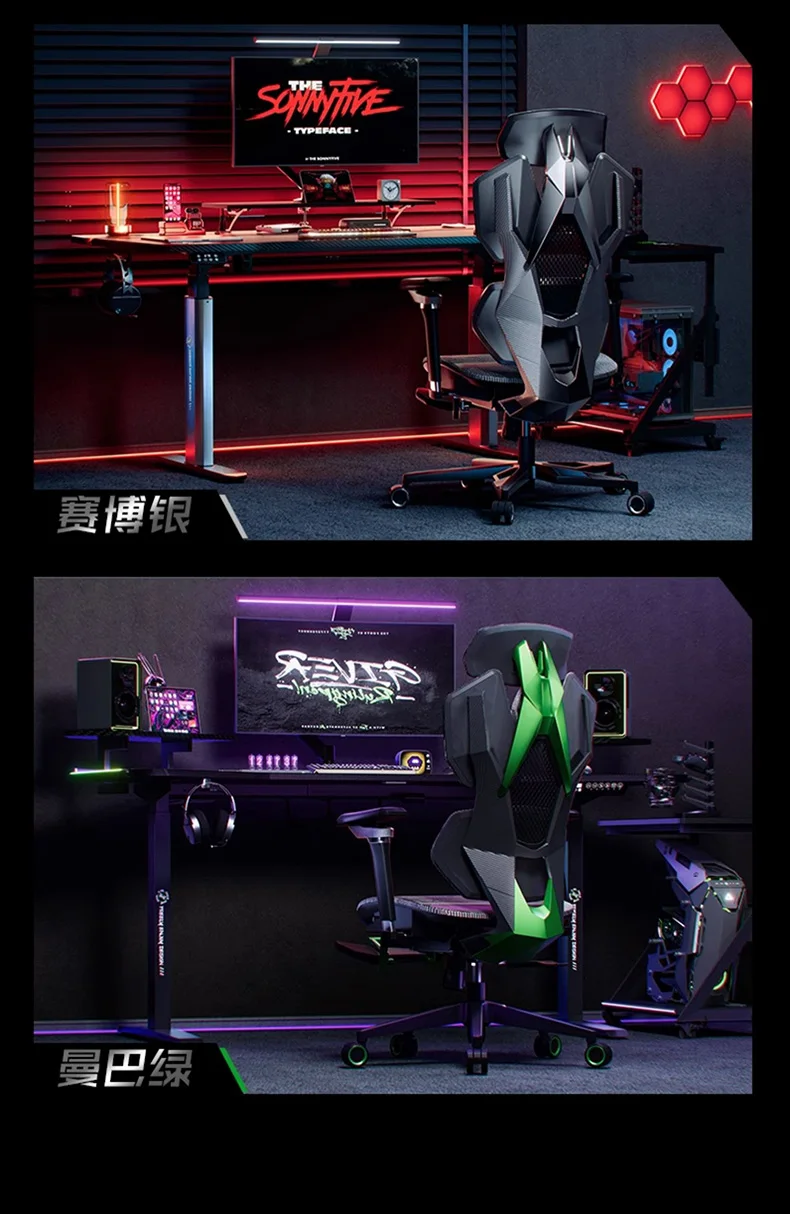 6. Équipé de panneaux décoratifs de couleur de style e-sports et de roues de chaise de couleur e-sports